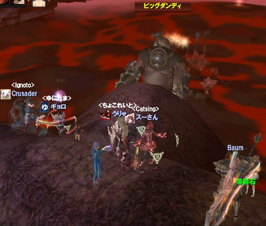 何だろう???と思いつつもおkしてみると、ビッグダンディ発見シャウトをしていたBaum様&討伐PTを募集していたCrusader様のお名前が・・・。